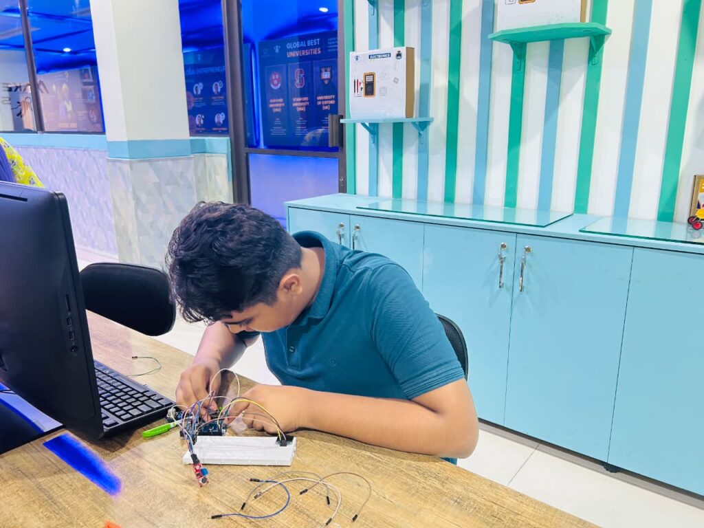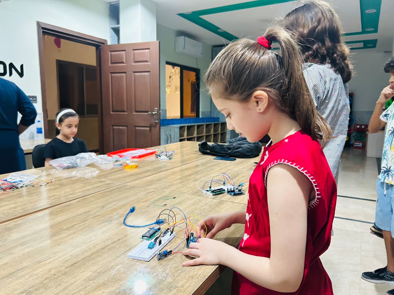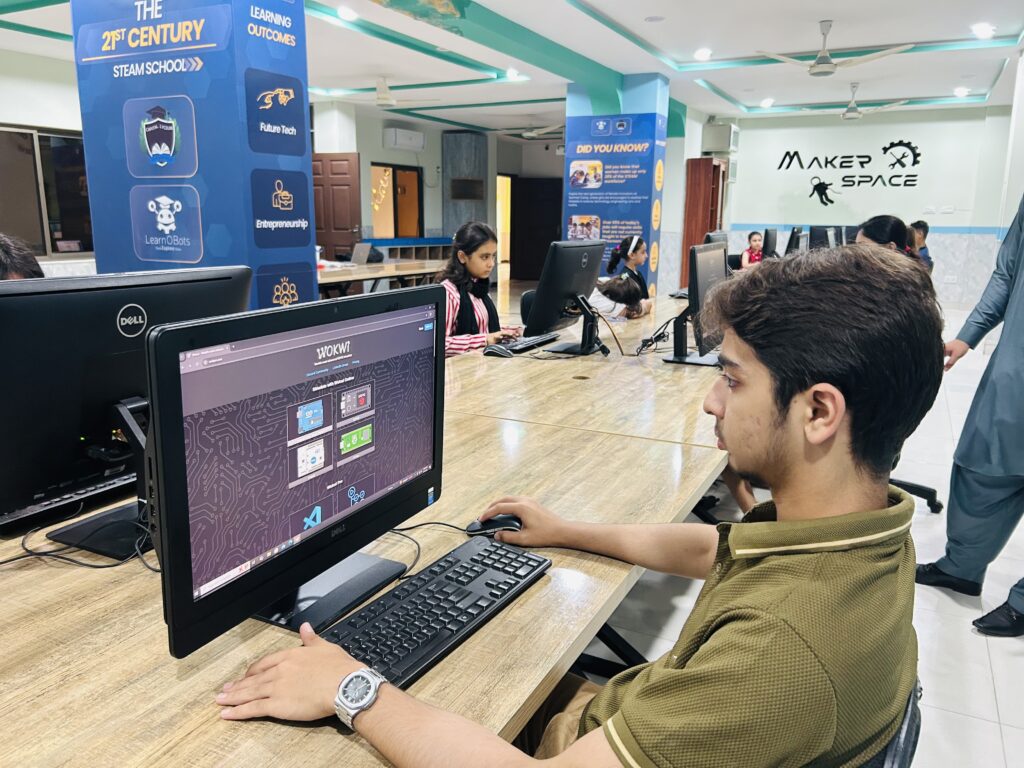 Designed in collaboration with LearnOBots (NUST), Our state-of-the-art AI, Robotics & STEAM (Science, Technology, Engineering, Arts & Mathematics) Lab is designed to inspire innovation, creativity, critical thinking and problem-solving skills among students. Equipped with Modern Tools, Advanced Robotics, AI & Science Kits, and cutting-edge technologies, the Maker Space provides hands-on experience in coding, electronics, engineering and automation. Students learn to design, build and program robots while exploring concepts of artificial intelligence, electronics and Science.